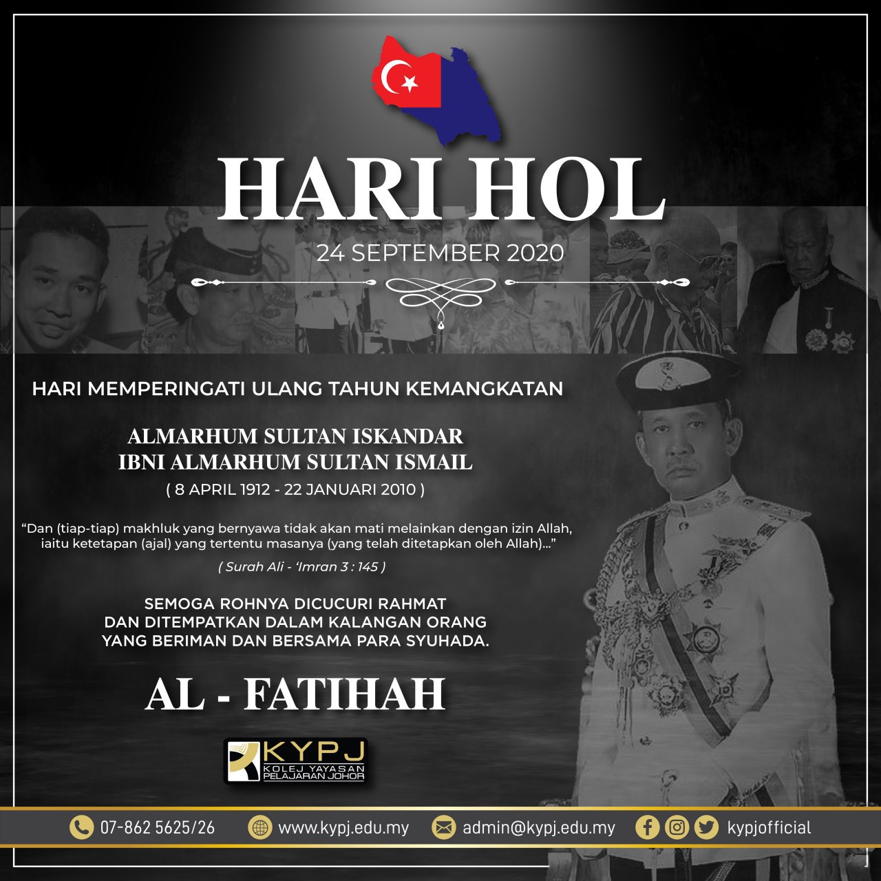 Hari Hol Almarhum Sultan Iskandar 2022 2023 dan 2024 Di negeri Johor tarikh kemangkatan mantan sultan merupakan hari cuti umum. It is the custom that the date of the passing of the previous Sultan is observed as a public holiday in the Malaysian state of Johor.
