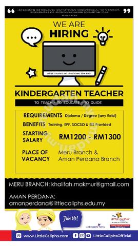 Job Vacancy Kindergarten Teacher At Little Caliphs Bandar Springhill Port Dickson Salary Range Rm1000 Rm1300 Relevant Experience Is Benefit To Influence Basic Salary Epf Socso Training Is Provided Annual